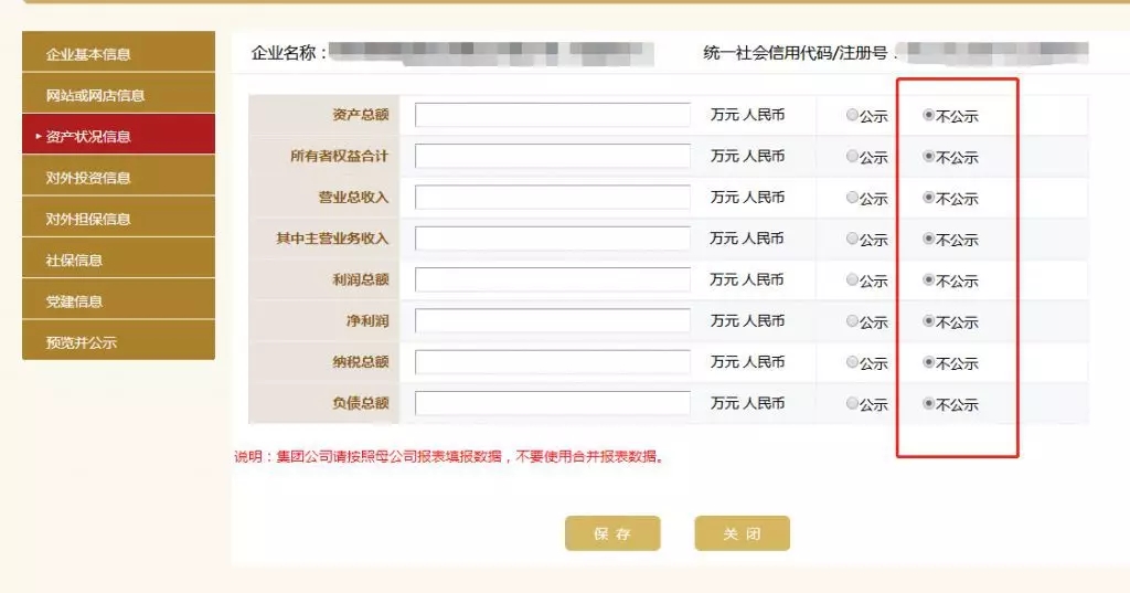 整套表中可(kě)以選擇不(bù)公示的(de)↓§信息,建議(yì)企業(yè)都(dōu)選擇不(bù)公♠±✘σ示。如(rú)果企業(yè)選擇了(le)公示,第三方将能(néng)通(tōn&λ δg)過全國(guó)企業(yè)信息公示系統查詢到(dào)。